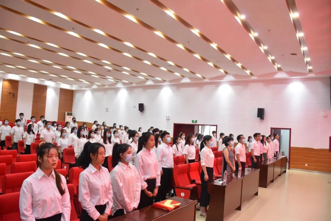 为引导新党员明确初心,坚定为党和人民奋斗终身的决心,7月1日上午,英国上市官网365在榴香苑三楼报告厅举办迎新党员入党宣誓活动。此次活动邀请学院党委副书记汪洋、各年级辅导员、2022年71名新发展党员参加。