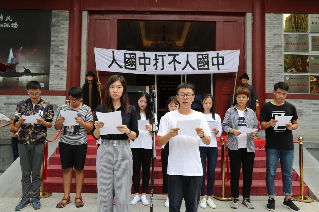 活动在一片慷慨激昂的朗诵声中拉开序幕。首先,来自北京市通州区第二中学的学生代表朗诵了《少年中国说》。随后,我院师生代表豪情满怀的为大家带来了诗歌朗诵《纪念九·一八》和歌曲《黄河大合唱》,同学们铿锵有力的声音仿佛将大家带回了腥风血雨的抗战年代,激励着我们勿忘国耻,砥砺前行。