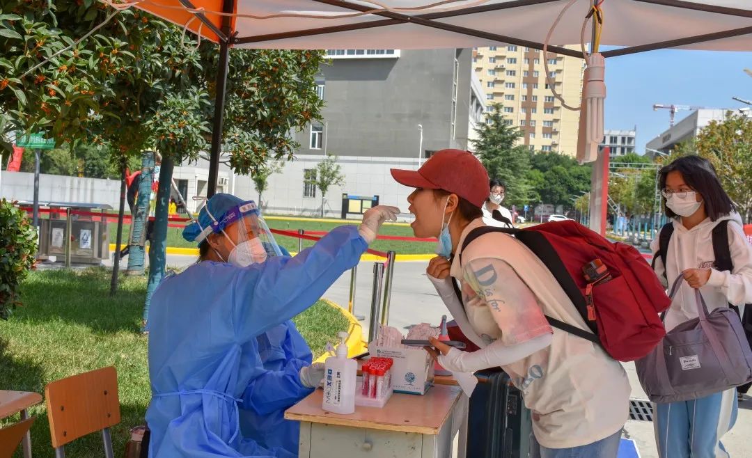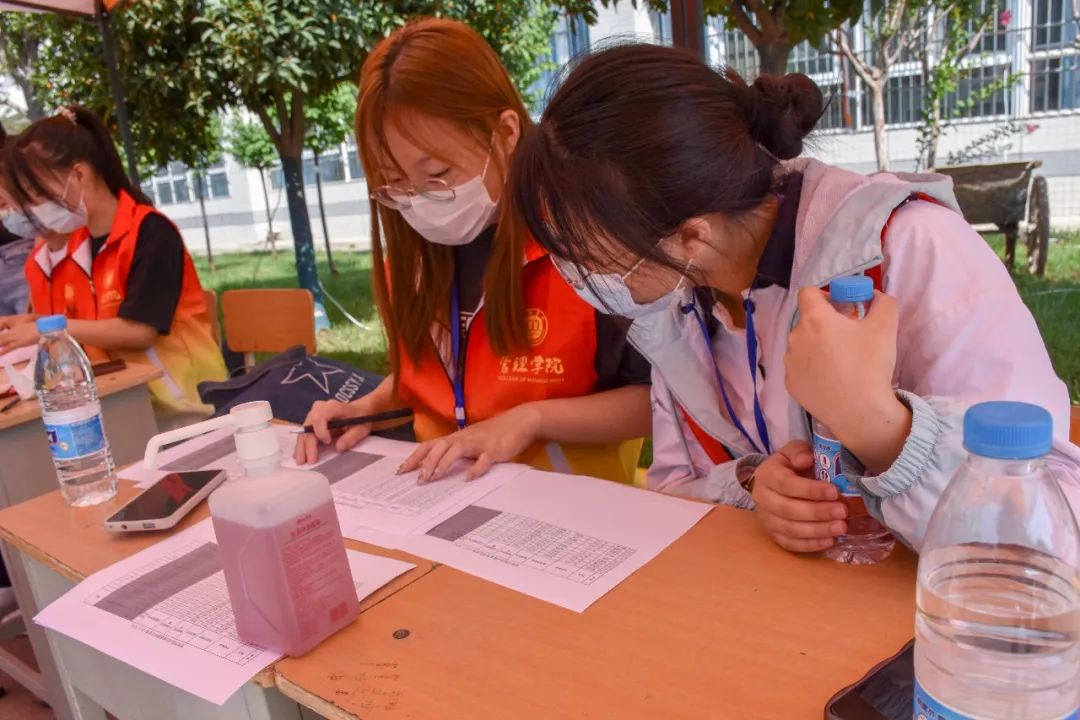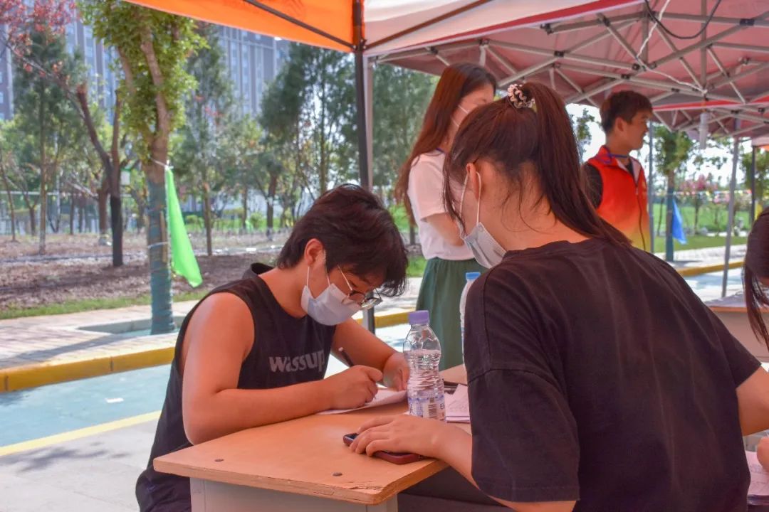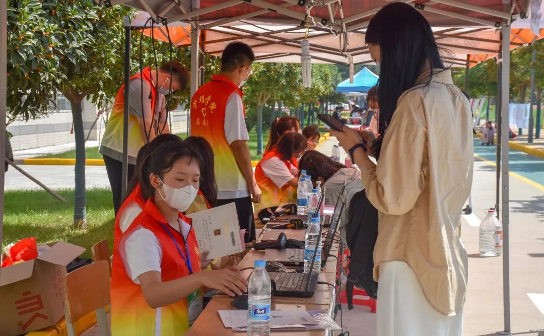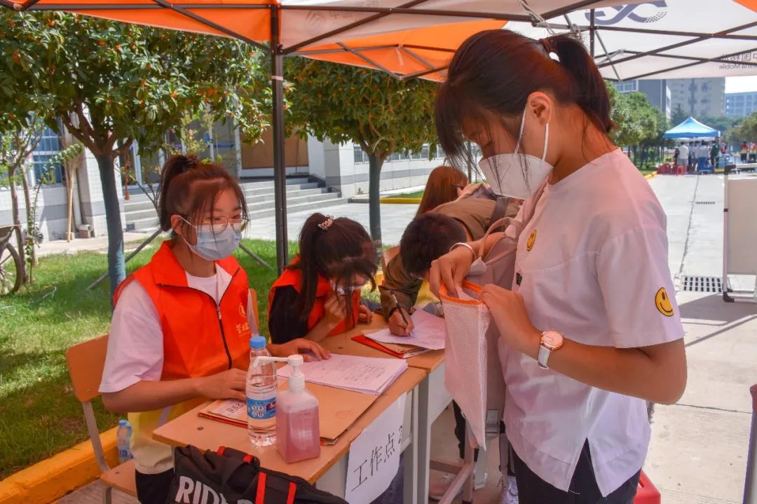 为了更好地迎接新生,使大家尽快完成入学手续,适应入学新生活,英国上市官网365组织在一号教学楼前设立一个核酸采样点及三个工作点分别进行核酸采样、“我在校园”返校凭证及“24小时核酸”采样完成查验、收取健康承诺书、核验新生身份及收取录取通知书并指明入住宿舍位置等工作,多个班次机动工作人员提供“志愿者一条龙”服务。2022级辅导员王延平与辅导员朱瑜以及志愿者们为迎接新生共同努力中。