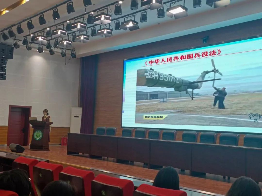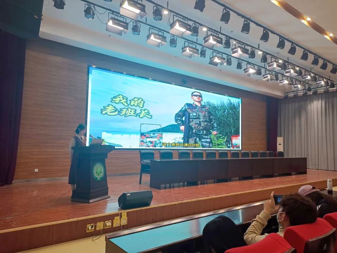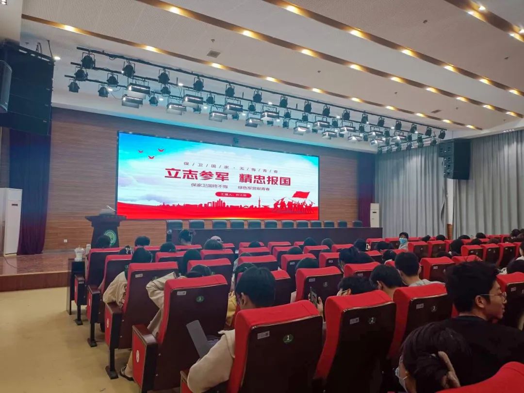 在报告会上,主持人为同学们简单介绍了预征对象的要求,向大家普及了《中华人民共和国兵役法》和《中华人民共和国退役军人保障法》两部法律中的部分内容,带领大家了解了我国的征兵政策。为了让同学们更加熟悉知晓应征入伍的具体要求,主持人通过一个趣味短视频进行深入地讲解,同时也向同学们介绍了大学生入伍返校后的优待政策。视频的最后也呼吁同学们积极响应国家征兵入伍的号召。