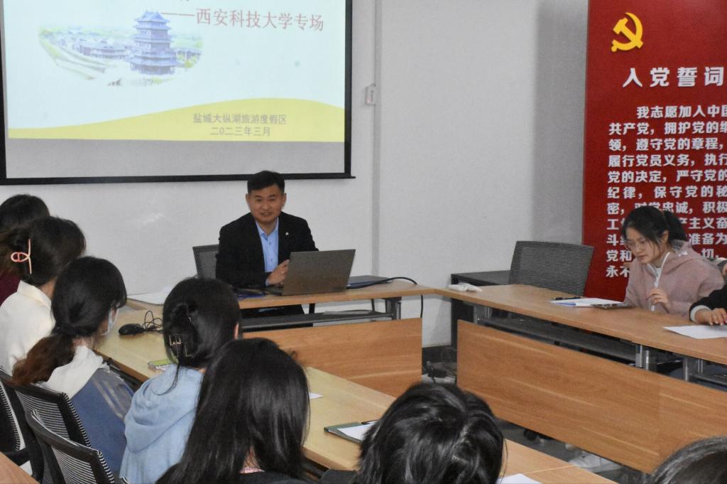 会后,盐城大纵湖东晋水城景区管理有限公司人事总监杨振宇在学院315会议室举行学院专场招聘,积极吸纳英国上市官网365毕业生就业。