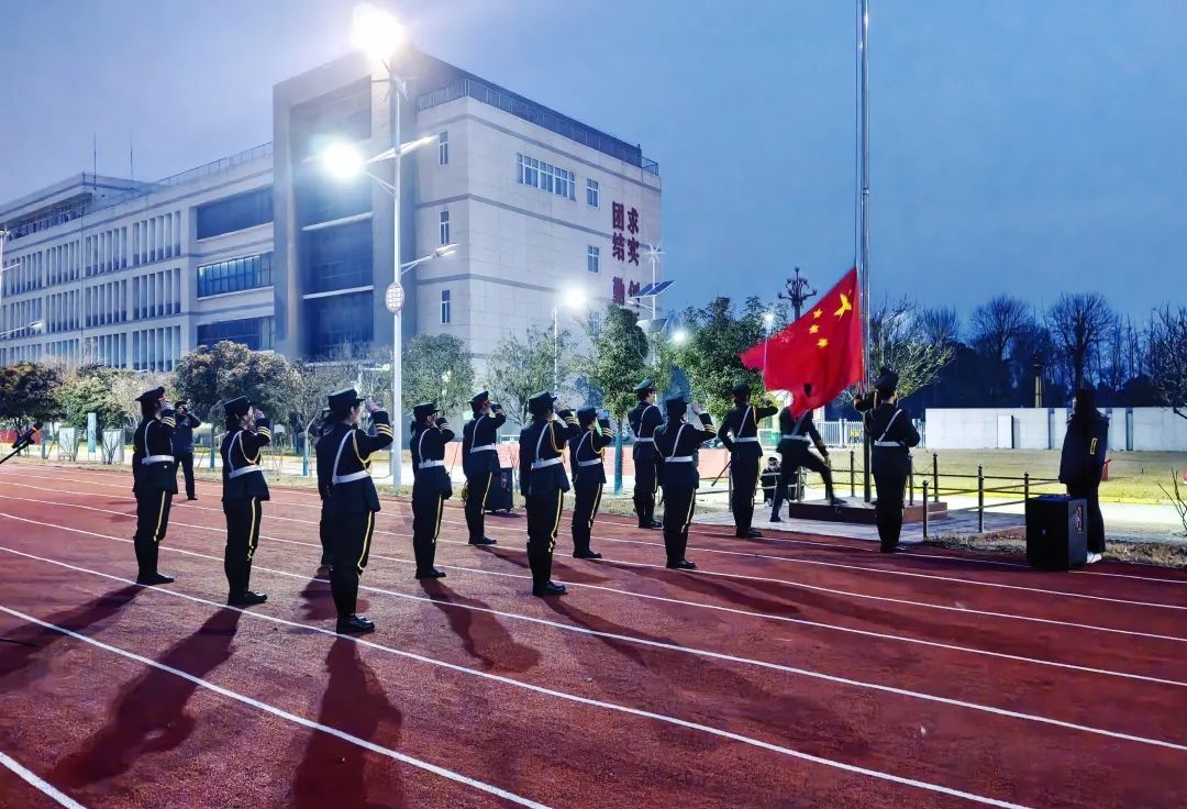 在激昂的《义勇军进行曲》中,国旗护卫队步伐铿锵,五星红旗冉冉升起。全体师生面向国旗肃立,齐声高唱国歌,展现出昂扬的精神风貌。