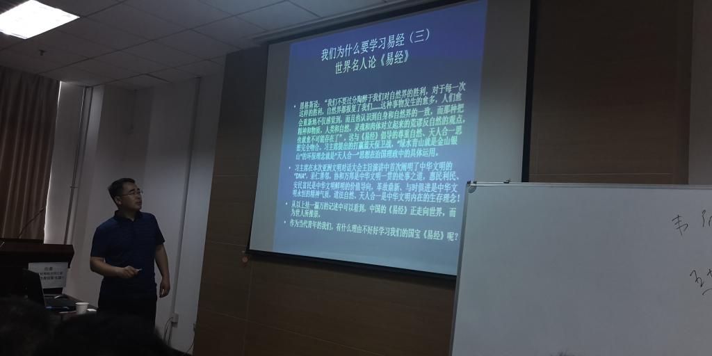 讲座上,吴龙系统介绍了《易经》的起源、发展,阴阳五行、天干地支及河图洛书,周易的基本特征及易理对现代管理的影响。他联系习近平总书记:“绿水青山就是金山银山”的环保理念与《易经》倡导的尊重自然、天人合一”的思想,提出了当代企业管理者学习易经的必要性。鼓励企业管理者要在工作实践中博采众长,学会吸收、灵活运用《易经》六十四卦卦辞蕴涵的中国式管理智慧。还结合“学习强国APP”在国内推广、改版、应用的具体案例,介绍了《易经》“简易、变易、不易”的三易原则。讲座后,吴龙与学员们进行了热烈的交流互动。