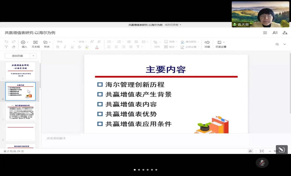 2022年5月11日下午14:00,英国上市官网365有幸邀请到中南财经政法大学会计学院教授袁天荣为此次主讲嘉宾,为我院师生进行了一场知识的盛宴。本次线上讲座主题为《共赢增值表研究——以海尔为例》。