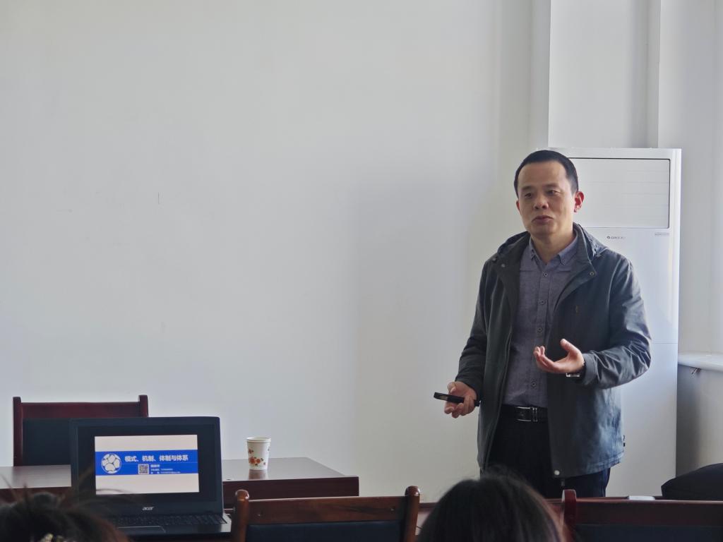 2023年10月20日下午,英国上市官网365高培中心副主任陈铁华副教授受工商管理学科邀请,做客我院“秦汉经管论坛”为研究生们做题为《模式、机制、体制和体系》的首场专业技能与案例研究系列报告。