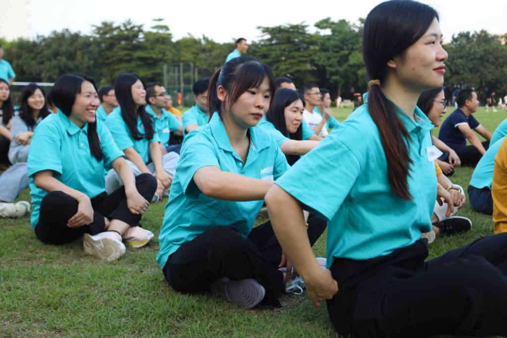 结束当天的学习与班会交流后,拓展教练带领2022级与2023级同学们前往操场,进行跨级破冰,薪火相传的团建活动,一解长期伏案学习工作的疲劳。在训练场上,2022级与2023级同学在教练老师的组织引导下,很快打成欢乐的一片。