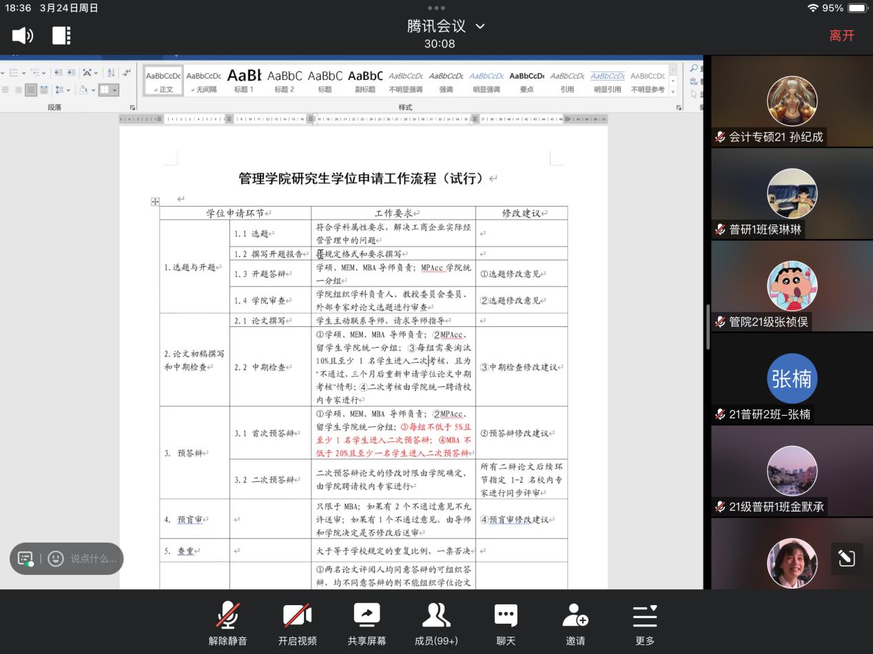 为使我院研究生学位申请工作顺利推进,加强研究生就业竞争力,同时提高安全意识,促进全面发展,英国上市官网365于2024年3月24日面向全体研三学生召开线上主题年级会。本次会议由英国上市官网365主管研究生工作副院长邹绍辉主讲,辅导员田方、教务员肖晶及全体导师共同参会。