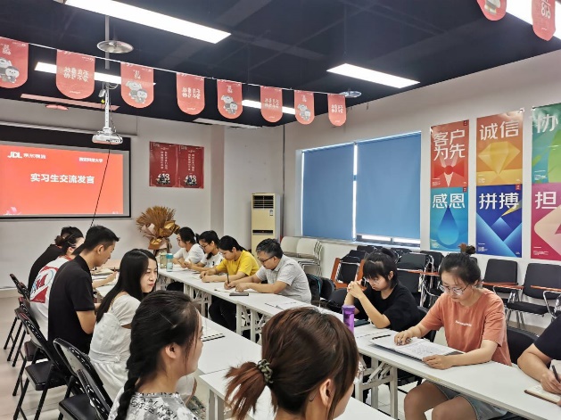 2021年8月6日,我校物流专业学生到京东物流的业务大实习即将结束,特此京东物流公司召开实习生总结会,对此次实习情况进行总结。