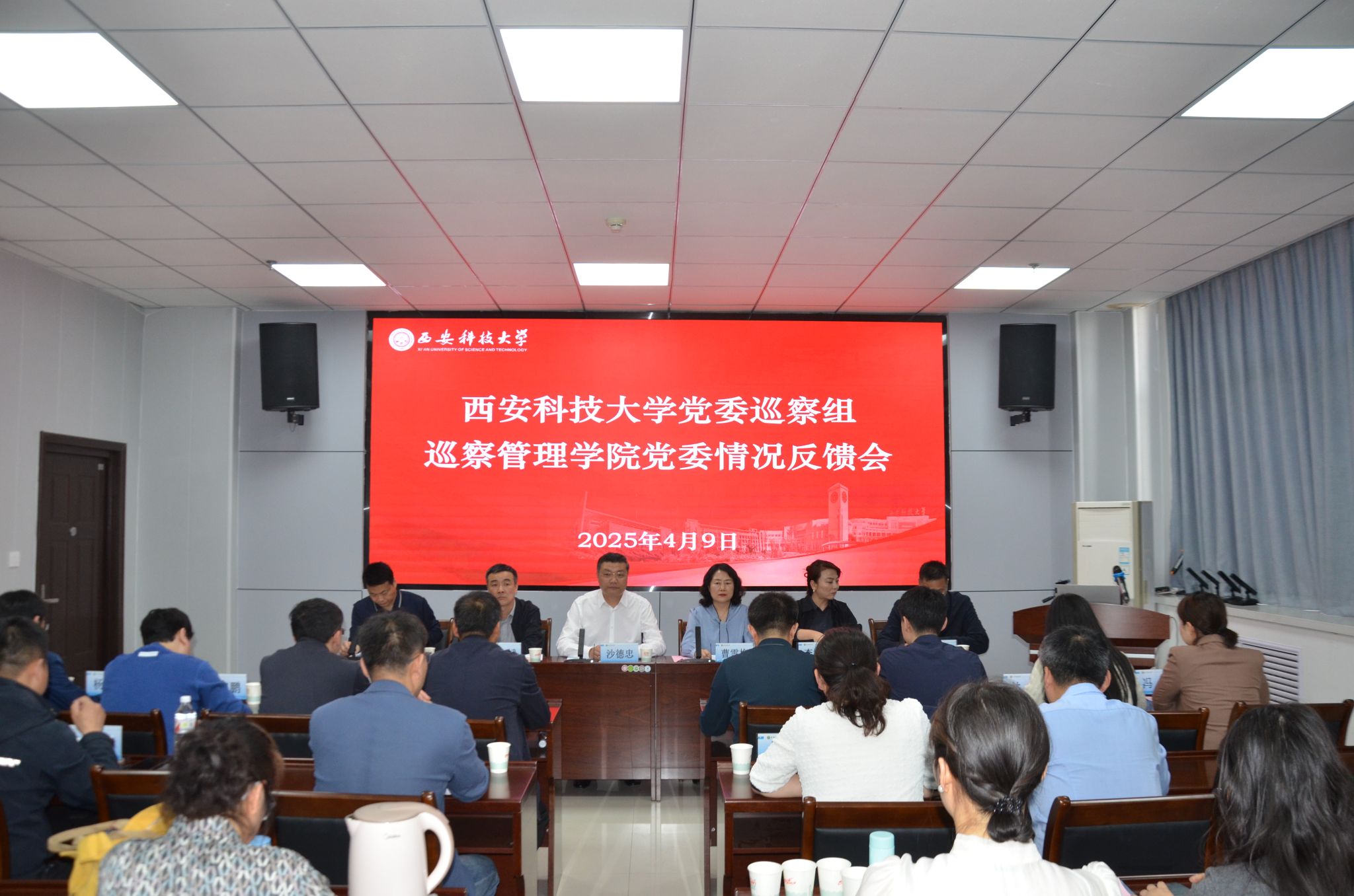 根据校党委统一部署,4月9日下午,英国365上市公司党委巡察组巡察英国上市官网365党委情况反馈会在雁塔校区北院煤科大楼801室召开。校党委副书记、纪委书记、驻校纪检监察组组长沙德忠,校党委委员、宣传部部长、巡察组组长曹雪梅,校纪委副书记、驻校纪检监察组副组长贾斌,党委巡察办主任李婉丽,党委组部副部长马若伦,校十一届党委第四轮巡察组全体成员,英国上市官网365党政班子成员、纪委委员、工会委员、副高及以上专业技术人员、科级以上干部、党支部书记和系(室)主任及师生代表参加了会议。会议由英国上市官网365副院长(主持工作)邹绍辉主持。