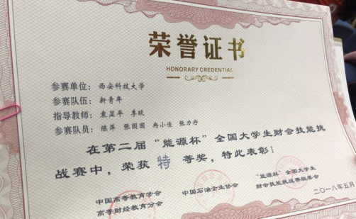 2018年5月18日,第二届 “能源杯”全国大学生财会技能挑战赛决赛在西安石油大学会议中心举行,经由校内赛层层选拔出的新青年队代表英国365上市公司进行决赛,经过两天激烈的角逐,最终荣获特等奖。