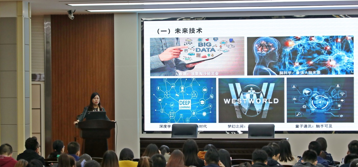 讲座伊始,陈静老师为大家分享了自己学生时代的生活,与我们当下生活做出对比。讲座中,陈老师从三大部分进行了引申和阐述。未来已来,“智”在千里,把未来社会定义为智能化、精细化和透明化社会;今夕何夕,“新”中有数,用新思维,新方式梳理知识淘汰旧认知;纵横江湖,“遇”见自己,运用多种创新思维,巧用工具,提高赋能;并从多角度分析了近30年来浐灞的发展,向大家讲述了浐灞及西安未来的蓝图。最后,她向大家说明了新时期下的中国的发展将朝着智能化、生态化、经济化的方向转型,希望同学们抓紧计划打造出属于自己的天空。