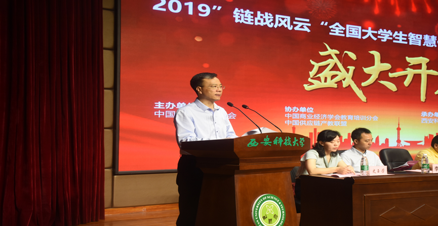 6月1日至2日,2019年“链战风云”全国大学生智慧供应链创新创业挑战赛(本科组)总决赛在我校临潼校区骊山校园成功举办。中国商业经济学会副秘书长郑天舒、我校副校长王贵荣、英国上市官网365院长王新平、招生办主任兼教务处副处长李磊、英国上市官网365党委副书记贾斌、副院长邹绍辉、史玉芳等出席了大赛开幕式。