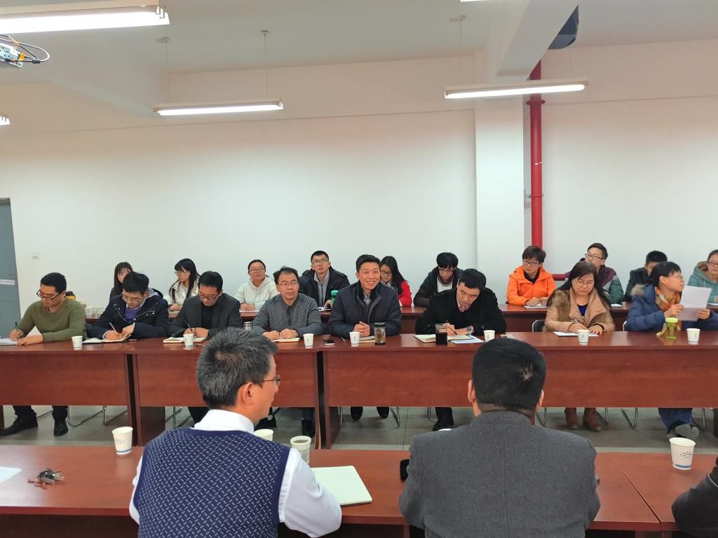 财务处副处长兼机关十二支部书记王凯对两个支部共建活动方案进行介绍,通过讲授一堂专题党课,组织一次业务研讨,搭建一个合作平台,举办一次专业比赛,开展一系列师生活动的“五个一”系列活动将共建活动继续推向深处,落到实处。财务处副处长刘刚发言,希望会计系教师能够对财务处人员进行最新会计学相关业务及知识的培训,增强人员的工作能力。会计系主任袁显平感谢财务处对Mpacc学生的培养的大力支持,希望以后加强业务领域合作,做好会计人才培养工作。