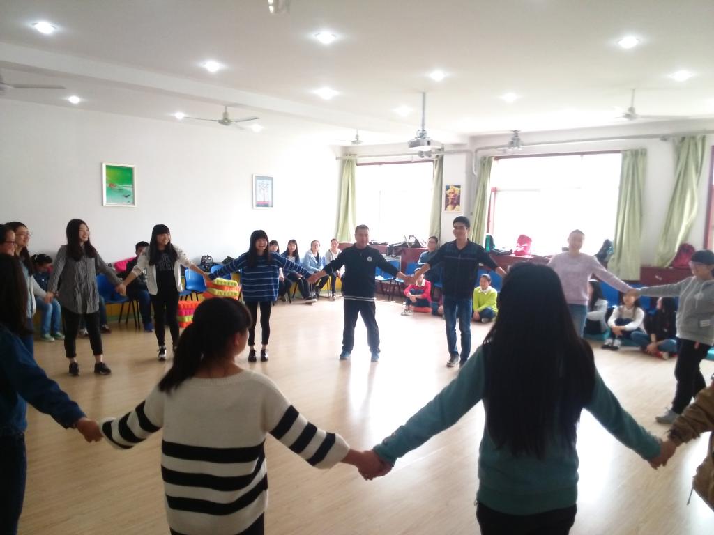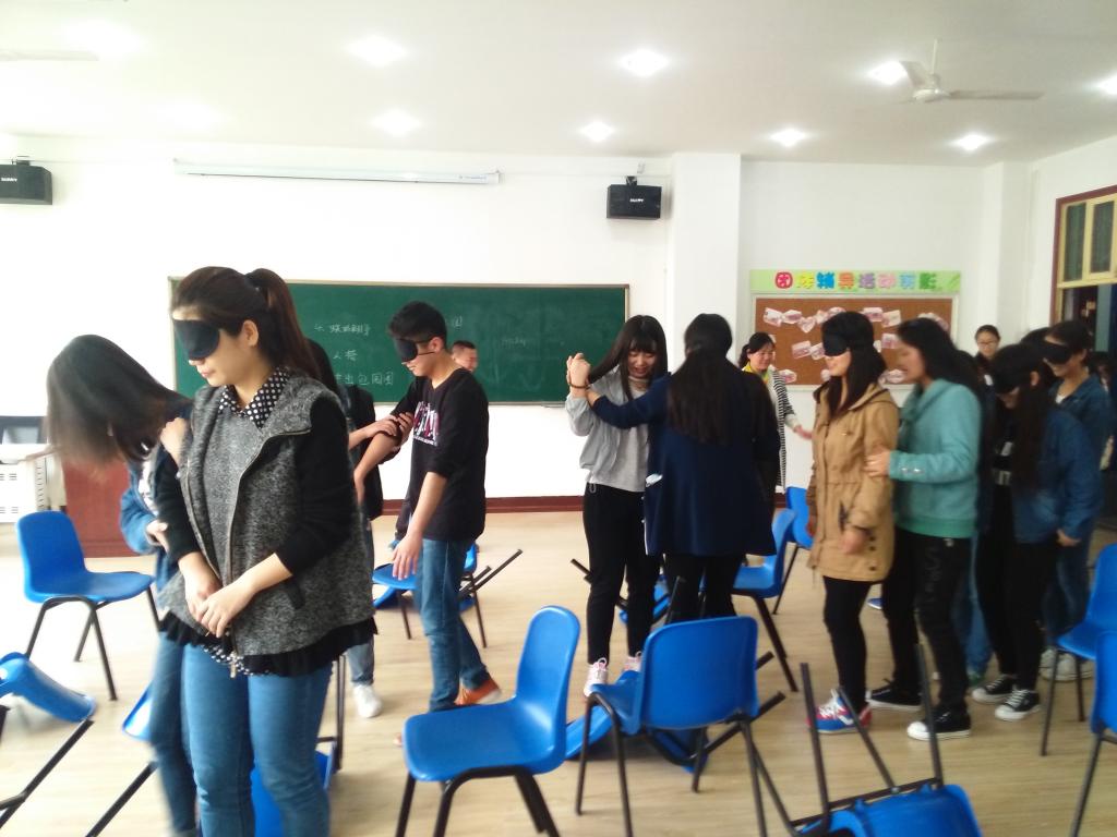 首先刘老师带领同学们参观并体验了宣泄室和放松室里面的设备,然后辅导活动在“花样握手”的游戏中拉开帷幕,通过新颖有趣的形式引领同学们认识团队的重要性,帮助他们更好地融入集体。在各种形式多样的小组活动中,同学们充分彰显了团队精神:“蜈蚣翻身”活动,各组组员通力合作,探讨最合理的传递方式,互相鼓励;“冲出包围圈”活动,大家齐心协力,相互协作,明白团队的重要性;“盲人旅行”和“信任后仰”活动,加深了同学们之间的相互信任。活动分享环节,同学们畅所欲言,谈感受、谈体会,在交流中明确集体力量的强大,展现了自己的风采。