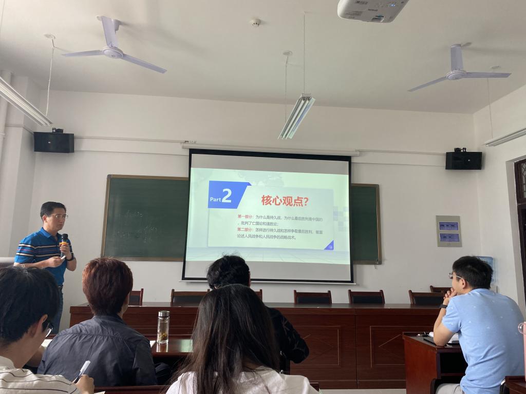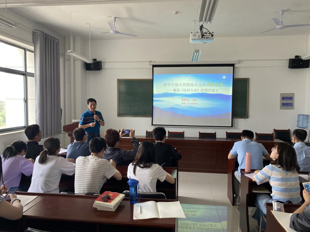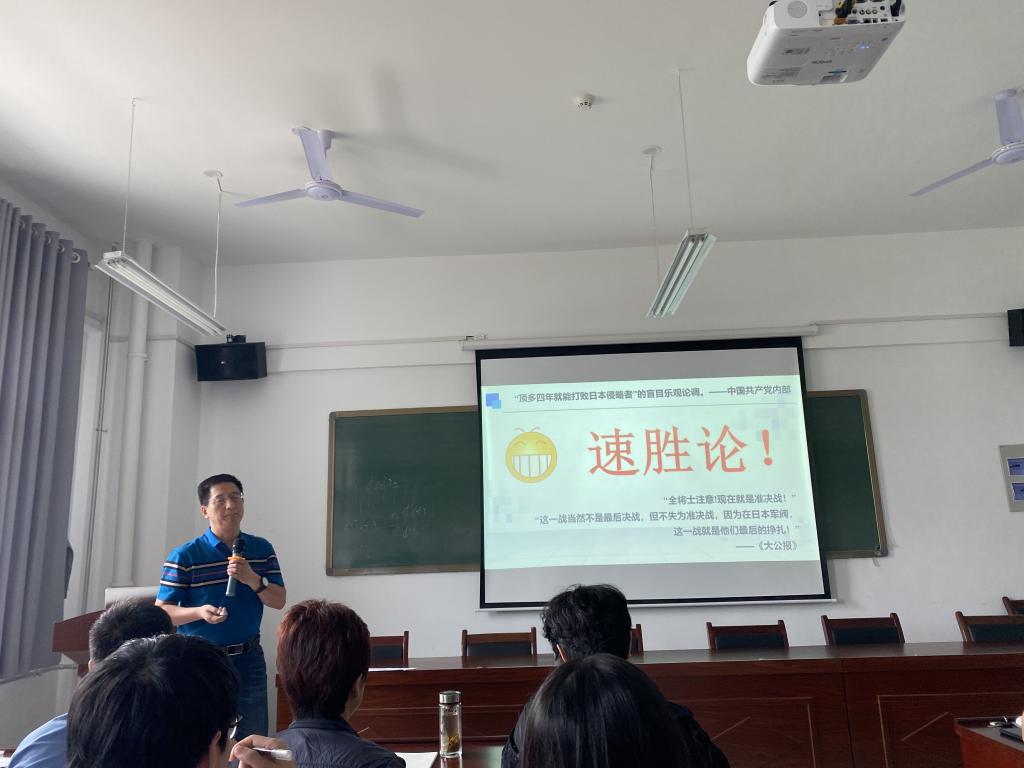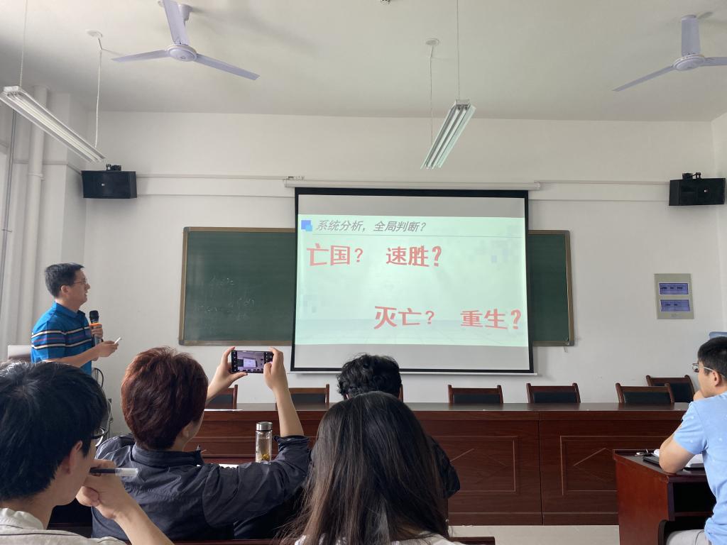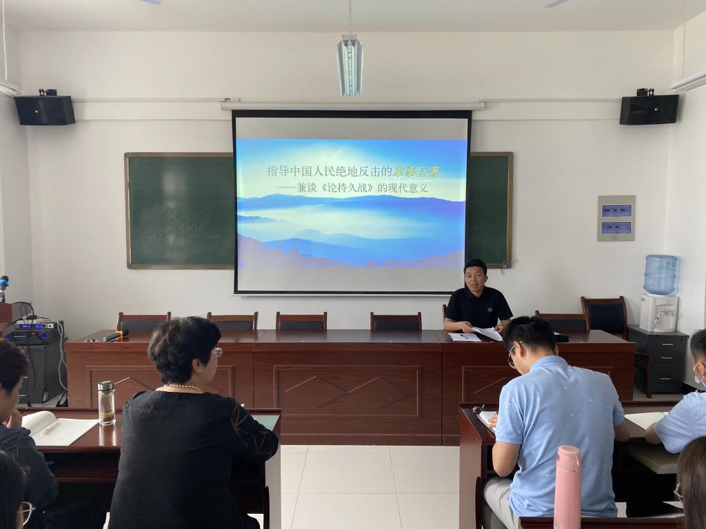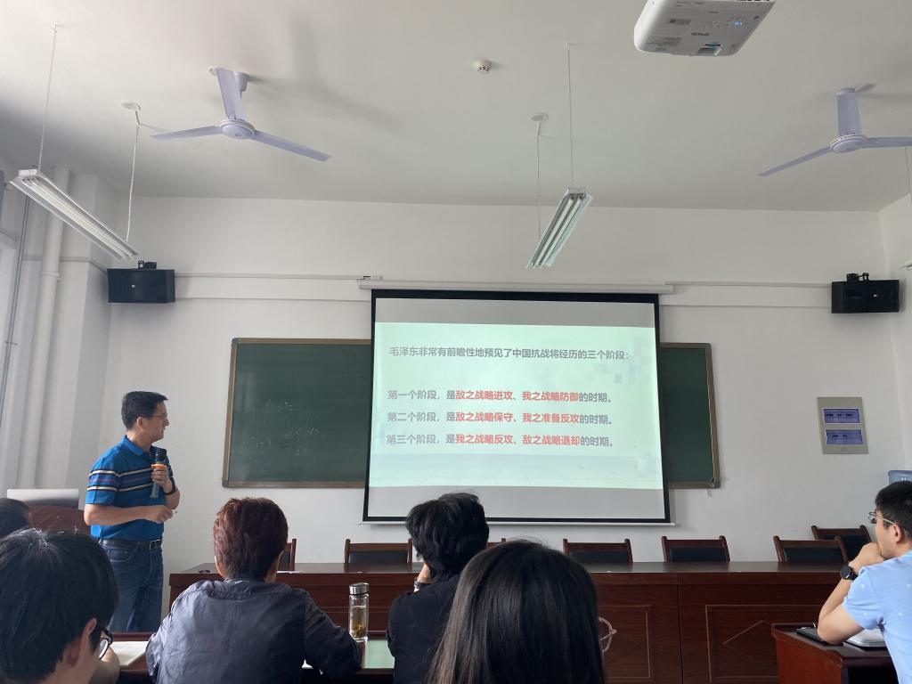 5月26日,英国上市官网365在秦汉校园3教401会议室开展党史学习教育,院长王新平为全体党支部书记及支部委员作了题为《论持久战》的现代意义。英国上市官网365院长王新平教授以“指导中国人民绝地反击的军事巨著—兼谈《论持久战》的现代意义”为题,引经据典,娓娓道来,为师生党员上了一堂深入深刻的党课。