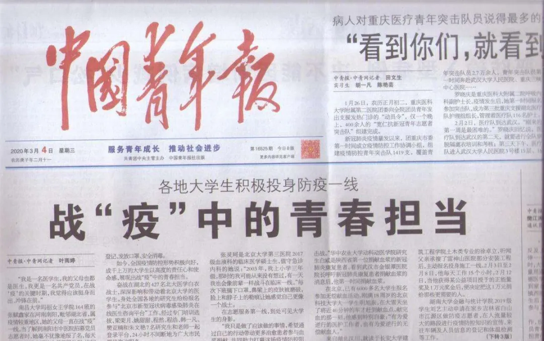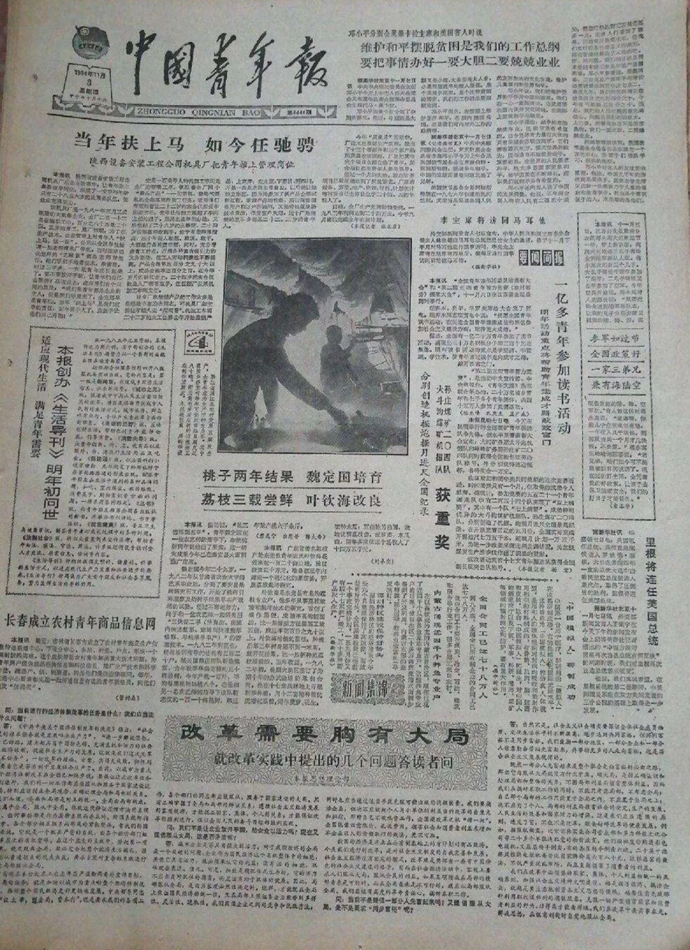 《中国青年报》是毛泽东同志亲自为中国青年报题写报名。1966年8月20日停刊。1978年10月7日,经中共中央批准,《中国青年报》复刊,为周三刊,对开4版。1978年复刊后,报道了身残志不残的张海迪、中国女子排球队等青年先进人物和先进集体的事迹。
