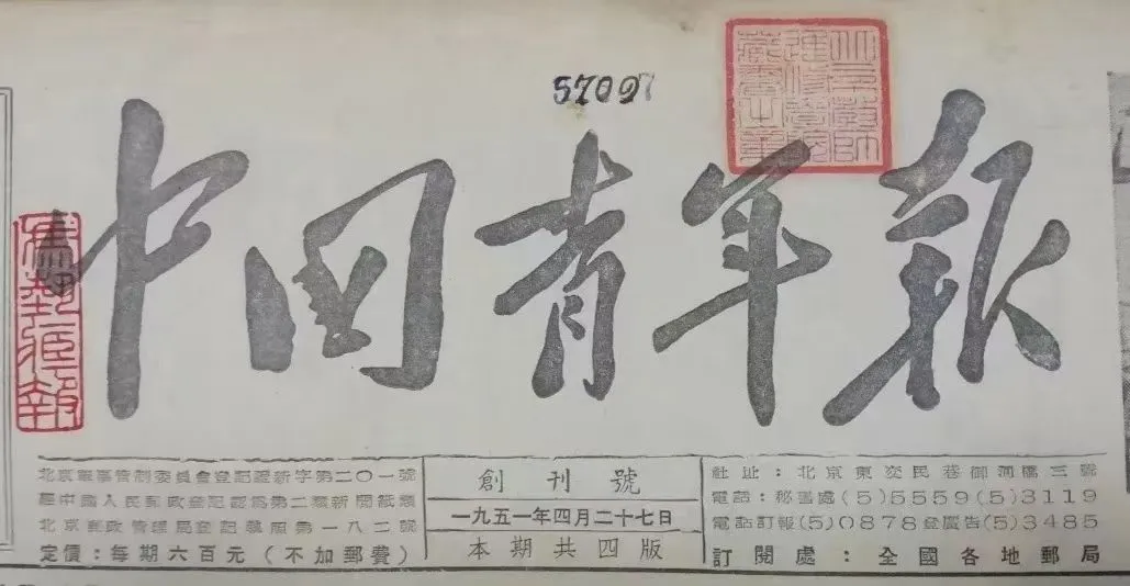 1951年4月27日,经毛泽东、刘少奇、周恩来等中共中央领导人批准,《中国青年报》在北京创刊,创刊时的编辑记者平均年龄只有21岁。《中国青年报》是以中国各族青年和中国共产主义青年团团员和干部为主要读者对象的全国性综合日报,该报以推动社会进步、促进青年发展为神圣职责。