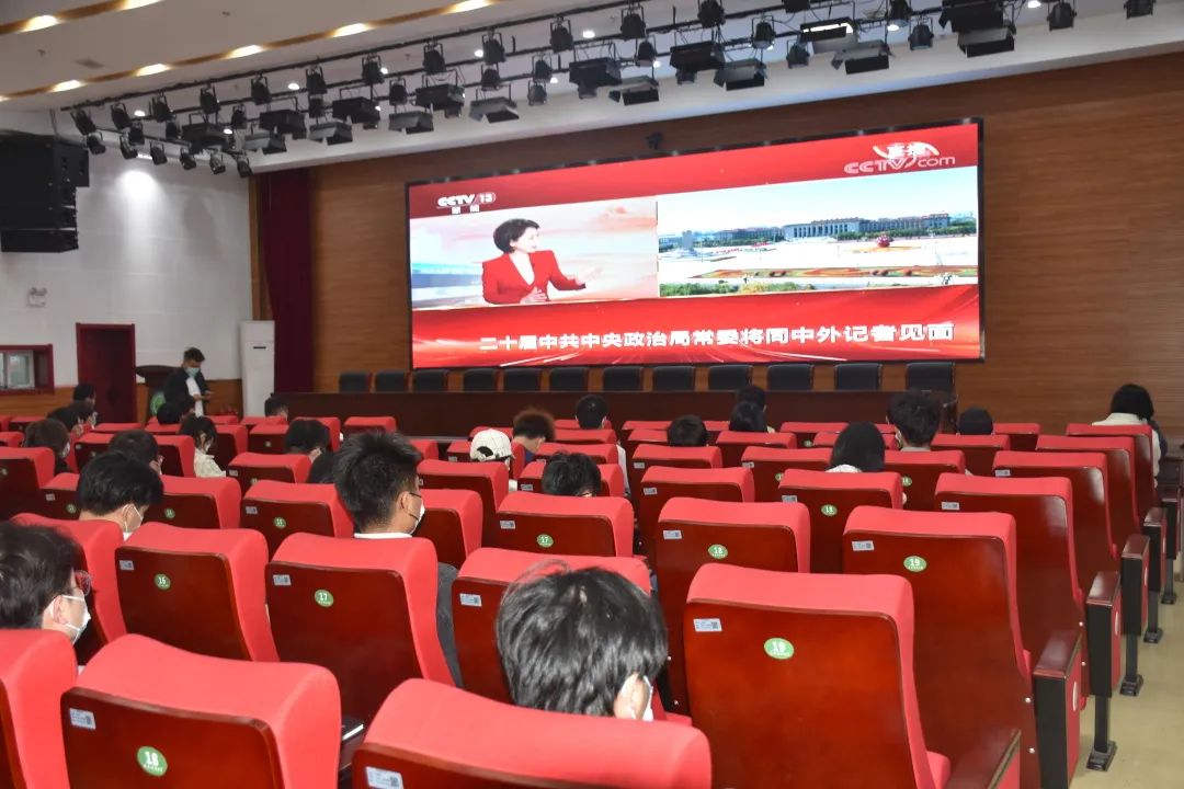 2022年10月23日上午11点45分,英国上市官网365党委副书记汪洋,团委书记上官万成及各年级辅导员组织同学于榴香苑三楼报告厅观看中国共产党第二十届中央政治局常委同中外记者见面会,深入学习习近平总书记在此次见面会上的重要讲话。