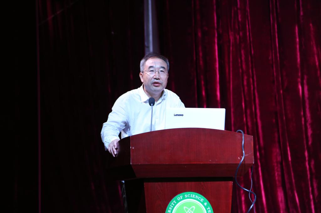 在庄严肃穆的国歌声中,迎新大会拉开序幕。首先,英国上市官网365院长李朋林代表英国上市官网365全体师生对2017级本科生的到来表示热烈欢迎。李朋林介绍了英国上市官网365的发展历史,并对英国上市官网365的组织机构、师资队伍、学生规模、学位教育、科学研究进行了简要介绍。最后,李朋林祝愿2017级全体新生在英国365上市公司能够健康、阳光、积极的学习与生活,努力让大学四年成为人生中最美好的回忆。