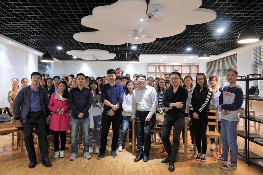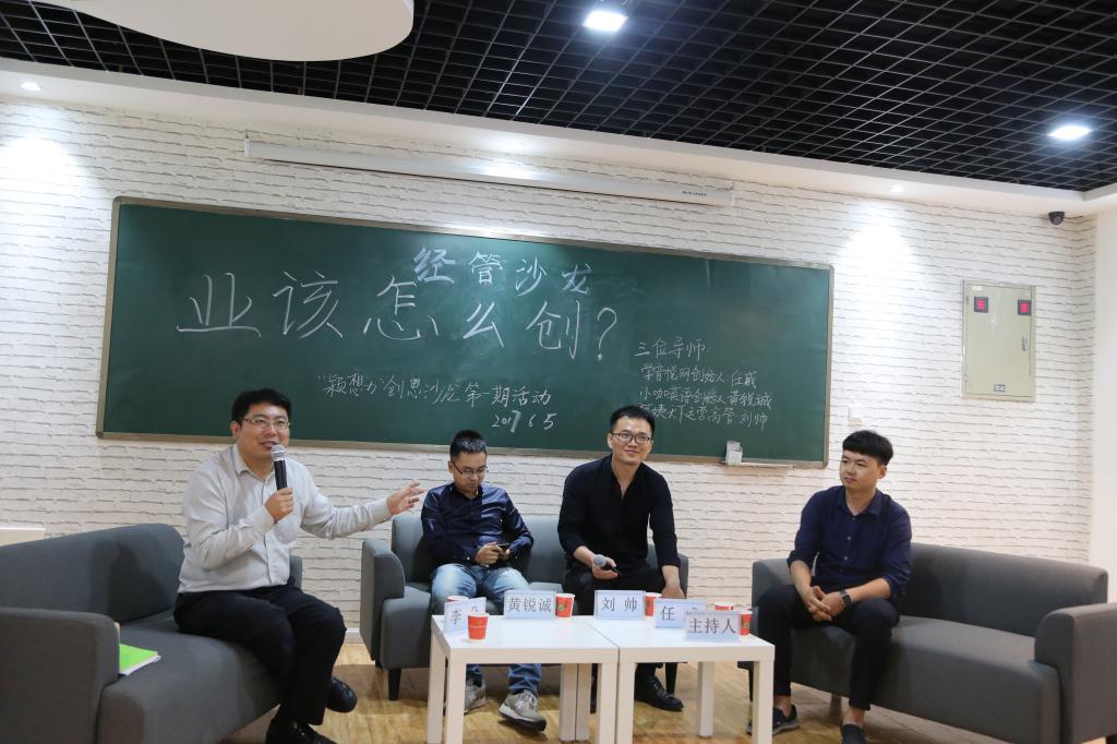 2017年6月5日下午,英国上市官网365在临潼校区15教102创客空间举办了主题为“业,该怎么创”的“颖想力”创思沙龙第一期活动。本次经管沙龙,我院有幸邀请到了西安广播电台《人在职场》主持人李朵,学音悦网创始人任威老,小咖英语创始人黄锐诚和阿姨天下运营高管刘帅做客本次沙龙。各位创业大咖与同学们相对而坐,在温馨轻松的氛围中与同学分享着自己的创业经验,主题发言精彩纷呈,各具特色,话题紧贴大学生创新创业,深层思考与对话。
