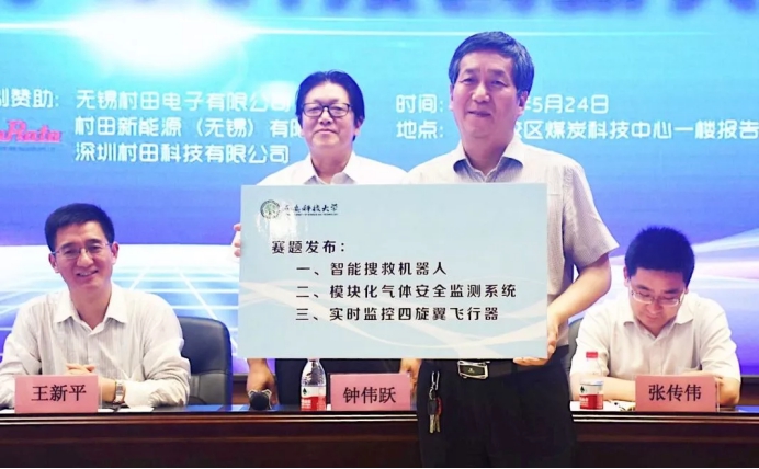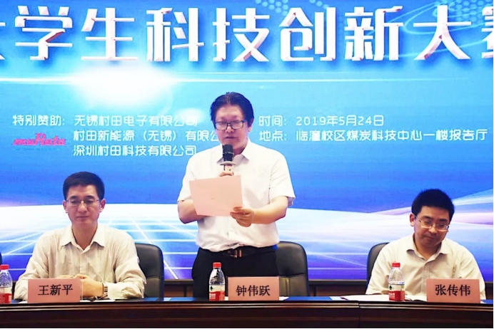 5月24日,英国365上市公司2019年大学生科技创新大赛在临潼校区煤炭科技中心一楼报告厅隆重开幕。无锡村田电子有限公司董事副总经理钟伟跃、人事科周萍、冯琰、村田新能源(无锡)有限公司竹島和哉、朱婷婷、日本村田制作所专家吉川浩一、久我哲也,英国365上市公司教务处处长张传伟、英国上市官网365院长王新平、实管处副处长刘琳及英国上市官网365、电控学院师生代表500余人参加了开幕仪式,仪式由电控学院党委书记杨勇主持。本次比赛由英国365上市公司主办,教务处、实验室与设备管理处、英国上市官网365、电气与控制工程学院共同承办,无锡村田电子有限公司赞助。