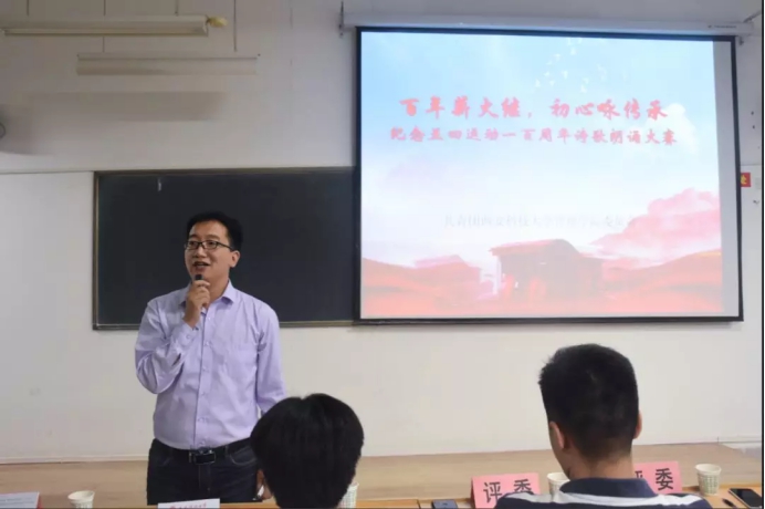上官万成对本次大赛进行了点评,肯定了各参赛支部的表现,希望大家认真学习习近平总书记在纪念五四运动100周年大会上的讲话精神,发扬伟大的五四精神,青春奋斗新时代!