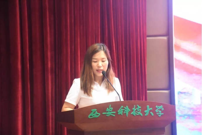 裁判方代表浙江精创教育科技有限公司徐书震上台致辞,她表示,经过一天紧张而精彩比拼,各参赛队伍都顺利完成了比赛,各位同学都展现出了良好的风貌和专业素养。同时,感谢领导给予裁判的工作的帮助以及各参赛队伍的全力配合。
