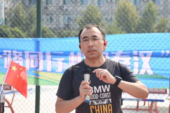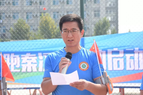 王新平宣读活动倡议书,他认为一个人想要得到敏捷和机智,健康和健美,想要得到顽强的意志、健全的人格,那就跑步吧!跑步无疑是最基本、最经典、最经济实惠、最容易做到的体育锻炼形式。青年拥有健康的体魄,民族就有兴旺的源泉,国家就有强盛的根基。