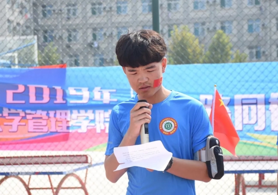 贾斌宣读活动开幕词,他表示健康是生命之本、运动是健康之基、习惯是运动之魂,科学的锻炼不仅能够增强体能,更能培养人的意志与毅力。管院师生通过“一路同行,悦跑秦汉”跑步活动庆祝中华人民共和国成立70周年,用强健的体魄和实际的行动祝愿伟大祖国更加繁荣富强。