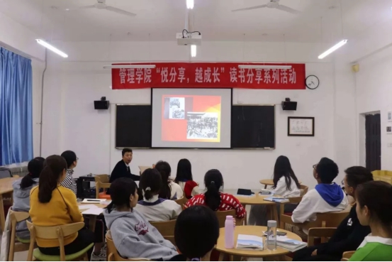 为响应习近平总书记关于争做新时代“四有”青年的号召,增强同学们的人文素养和科学精神,丰富课外文化活动。2019年10月10日,在秦汉校园1教111教室,英国上市官网365举办了第二期“悦分享,越成长”读书分享系列活动。英国上市官网365党委书记冯国栋担任分享嘉宾,英国上市官网365团委副书记王抢主持活动。