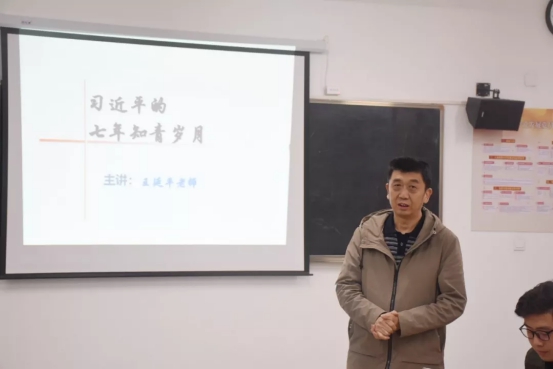 2018级本科生党支部党员王延平以“习近平的七年知青生活”为主题,讲述了习近平总书记15岁时来到延川县插队时,与当地人民朝夕相处并不断成长的历练故事。他通过描述习近平总书记知青时期的艰难生活和成长历程,号召众人要树立正确的人生观,励志成才;鼓励各入党积极分子要锤炼党性、提升素质、不忘初心、砥砺前行,为祖国的繁荣复兴添砖加瓦。