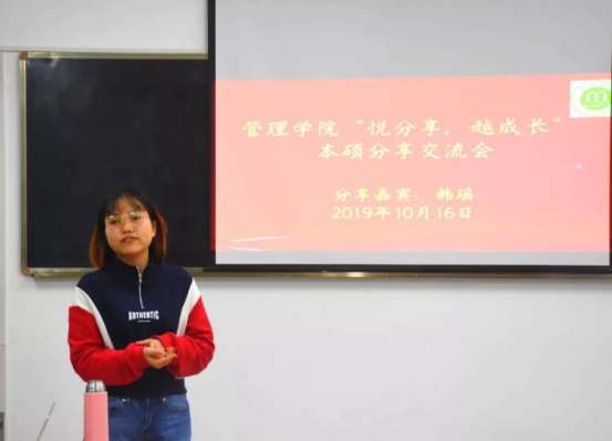 2019年10月16日,英国上市官网365顺利开展了“悦分享,悦成长”本硕分享交流会的第二期活动。2019级普研二班的韩瑶作为本次分享交流会的嘉宾,通过自己的大学生活经历,总结了许多经验,为2019级旅游管理的新生们提供了大量有关于大学学习生活上的建议。