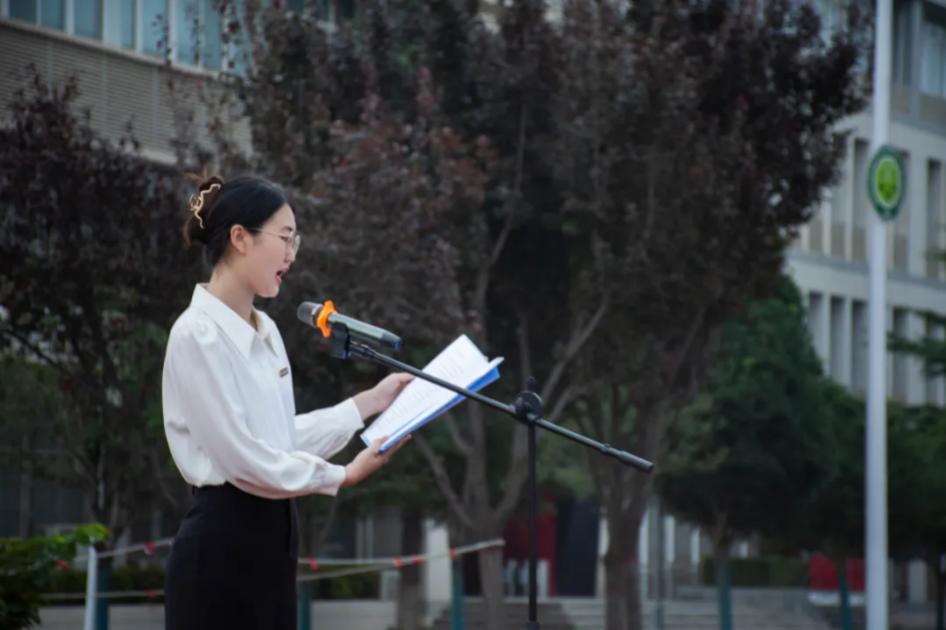 礼毕,学生代表张笑晗以《山高水长有时尽,唯我师恩岁月长》为题,在国旗下发表演讲。她回顾了老师们在学习生活中给予的关怀与指导,表达了对老师们深深的感恩之情。令在场的每一位师生都为之所动,深深体会师恩的厚重与伟大。
