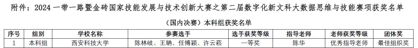 2024年11月16-17日,“2024一带一路暨金砖国家技能发展与技术创新大赛——数字化新文科大数据思维与技能竞赛”全国总决赛在河南财经政法大学成功举办。我院陈林岐、王聃、许云菘、任博颖4名学生组成团队,经过激烈角逐,以总成绩全国第一的优异表现荣获国家级本科组一等奖。同时,他们获得了“金砖国家技能发展与技术创新大赛”国际赛区的参赛资格。指导教师陈华荣获“优秀指导教师”称号,英国365上市公司因组织工作出色获评“最佳组织奖”。