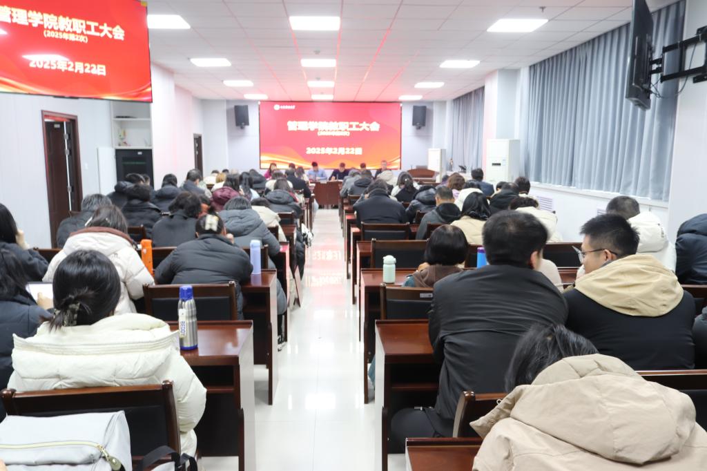副院长史玉芳就新学期上课、毕业设计、毕业实习、本科招生宣传等工作提出要求,鼓励广大教师抓住AI赋能教学的机遇,积极尝试将人工智能等创新技术融入到日常的教学中;副院长成连华对研究生培养和科研工作进行了安排,要求加强对预毕业研究生论文和成果的审核,提出要加强研究生招生宣传,对新的一年的科研指标要求进行讲解并进行了安排部署;党委副书记汪洋学生返校、就业、考研等工作进行通报,希望全体教职工能够持续关心关注学生工作。