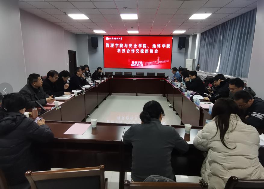 2025年2月23日,应学院邀请,安全学院副院长肖鹏、地环学院副院长侯晨涛及两学院部分教师一行来我院开展科技合作交流。学院各系主任、创新团队负责人及各学科研究方向教师代表参加了会议,副院长成连华主持会议。