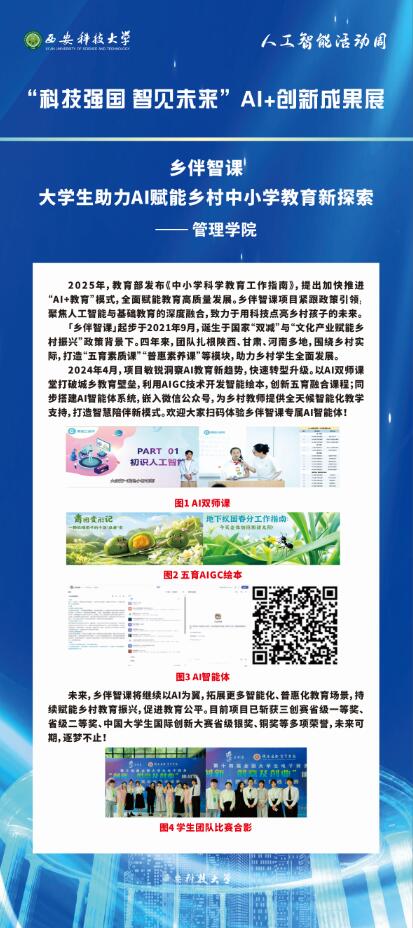英国365上市公司“科技强国·智见未来”人工智能活动周系列活动于5月1日上午在学校雁塔校区和临潼校区同步启动。英国上市官网365教改研究项目“AIGC在主观题评价中的应用及效果研究”和学生竞赛获奖项目“乡伴智课——大学生助力AI赋能乡村中小学教育新探索”参与了此次活动周展示。