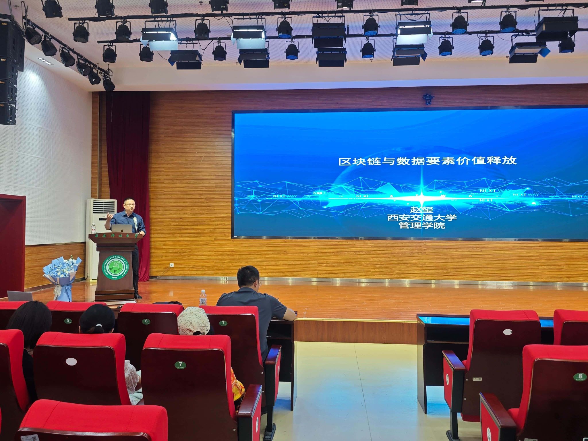 赵玺教授凭借深厚的学术功底与丰富的实践经验,深入浅出地讲解了区块链技术的基本原理。他从区块链诞生的时代背景讲起,详细剖析了其去中心化、不可篡改、可追溯等核心特性,以及智能合约、共识机制、密码学、分布式账本四大技术支柱。通过列举金融领域跨境支付效率提升、供应链管理中商品溯源更精准等多个不同领域的典型应用案例,让抽象的技术概念变得通俗易懂,为师生们搭建起理解区块链技术的知识框架。在探讨数据要素价值释放时,赵玺教授紧密结合当下我国关于数据要素市场化配置改革的政策导向,以及行业的最新发展趋势,深刻阐述了数据作为新型生产要素在推动经济高质量发展中的关键作用。他指出,通过区块链技术构建基于价值区块链的数据供应链体系,能够有效实现数据的确权、流通与增值,打破长期存在的数据孤岛现象,为数据产业的创新升级注入强大动力。