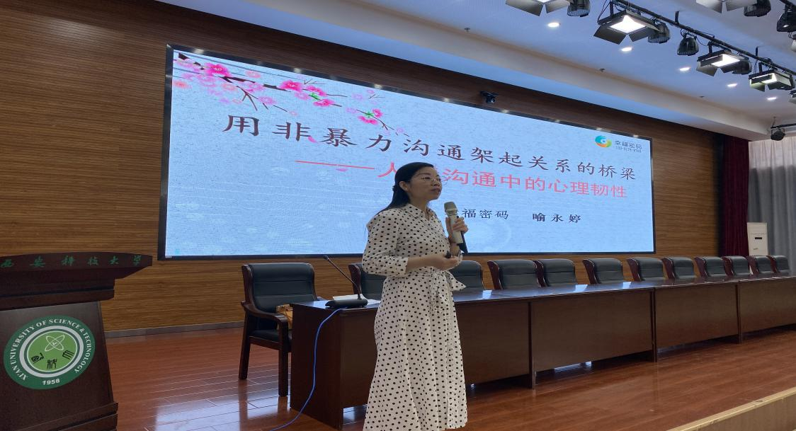 本次讲座历时2小时,旨在让同学们学会用非暴力沟通架起关系的桥梁,用非暴力沟通进行高效,正面的化解关系冲突。喻永婷老师用生动的事例让同学们对非暴力沟通有了更深刻的认识,使广大研究生获益良多。