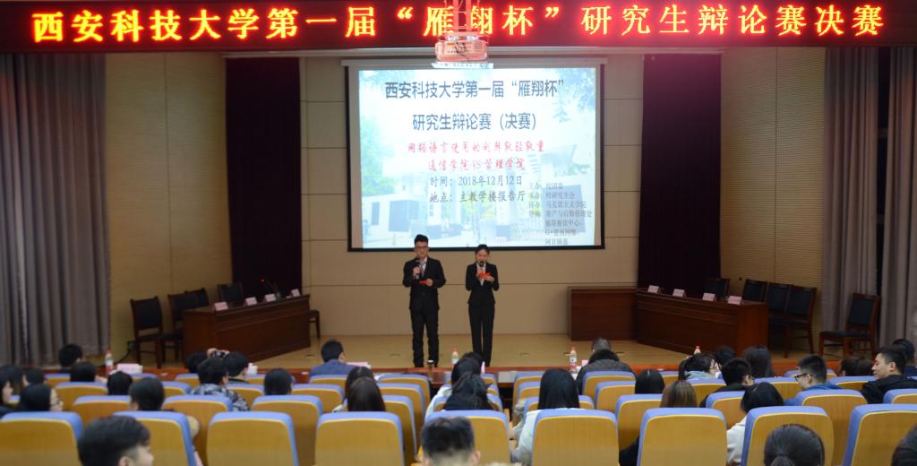 唇枪舌战,辩出赛场硝烟;口若悬河,理出是非曲直。经过为期半个月的激烈争夺,英国365上市公司第一届“雁翔杯”研究生辩论赛决赛于12月12日19:00在雁塔校区主楼报告厅打响。辩论主题为:网络语言的使用利大于弊(通信学院)VS网络语言的使用弊大于利(英国上市官网365)。经过四分环节的激烈争辩,英国上市官网365代表队最终获得首届研究生辩论赛冠军。