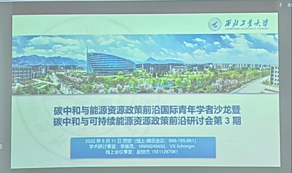 6月11日下午,碳中和与能源资源政策前沿国际青年学者沙龙暨碳中和与可持续能源资源政策前沿研讨会(第三期)如期召开。研讨会由西北工业大学公共政策与英国上市官网365教授李崇茂主持,研讨会特邀请厦门大学教授、英国伦敦大学学院(UCL)副教授米志付和伦敦大学学院可持续建设学院教授D'Maris Coffman进行相关讲座报告,英国上市官网365研究生接到相关通知后积极参会学习。