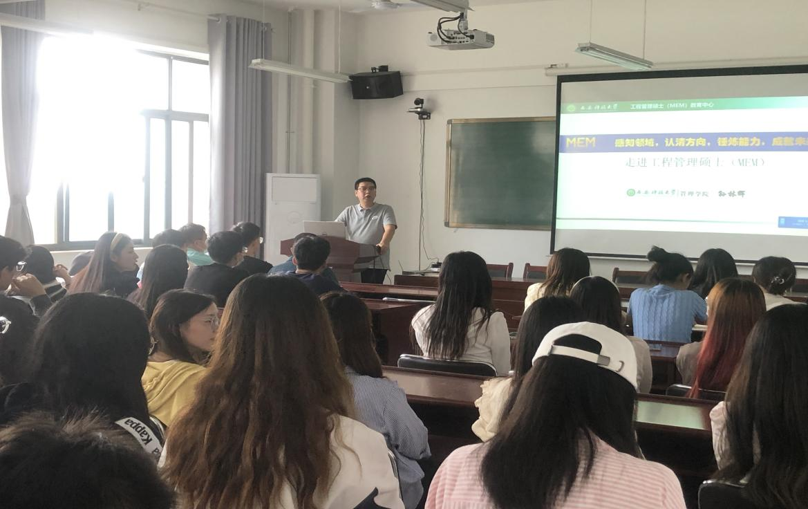 孙林辉做了《感知领域,认清方向,锤炼能力,成就未来——走进工程管理硕士(MEM)》的讲座,从“是什么、如何学、怎么做”三个方面为新生传授经验、答疑解惑。